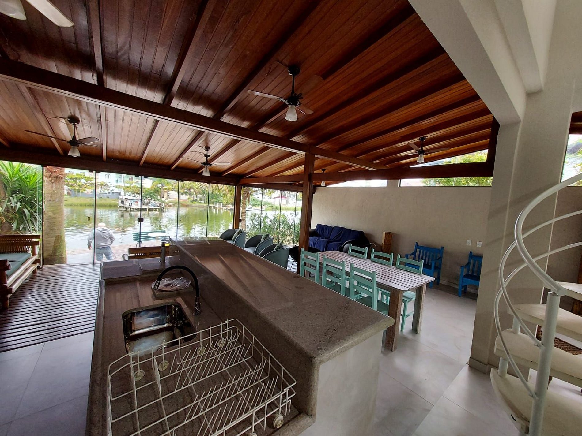 De frente para beira do canal,